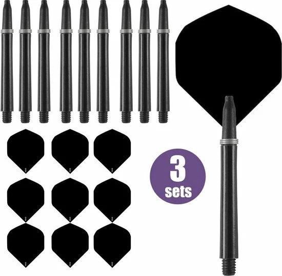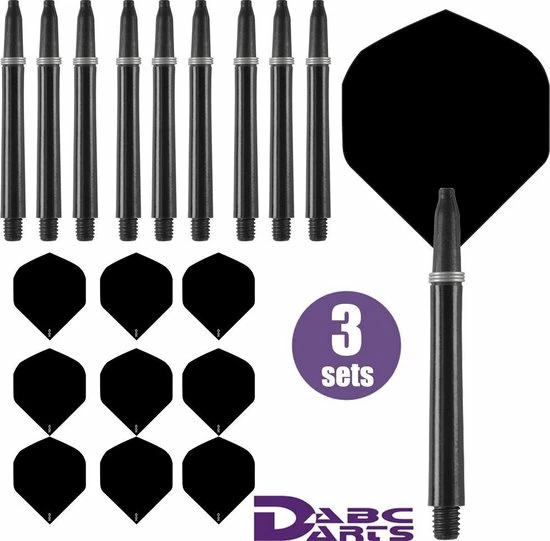 3 sets, oftewel 9 Dart Flights en 9 Dart Shafts van het Nederlandse dartmerk ABC Darts in 1 koop.