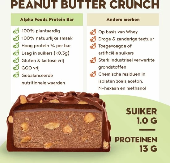 - Gemaakt door meesters in hun vak: Alpha Foods Vegan Protein Bars zijn geen conventionele proteinbars. Ze zijn gemaakt door meesters in hun vak met plantaardige, duurzame proteinen als een echt suikervrij alternatief voor een lekkere snack.