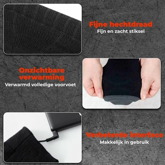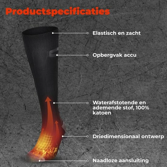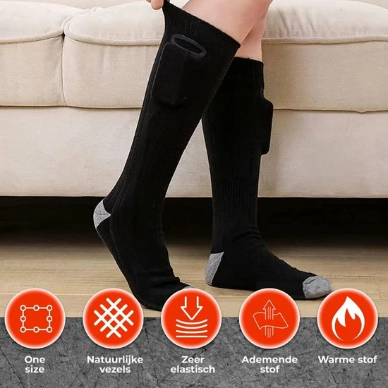 Houdt uw voeten lekker warm met deze nette en comfortabele sokken. De sokken zijn binnen een minuut verwarmt. De sokken zijn volledig van katoen gemaakt en zijn slijtvast.
