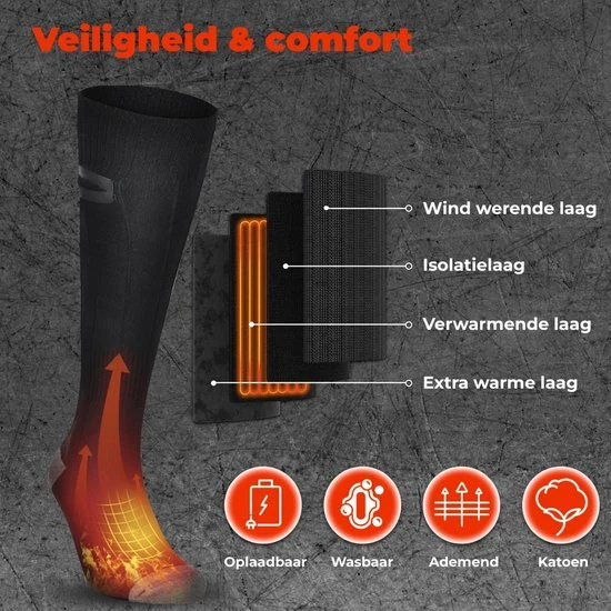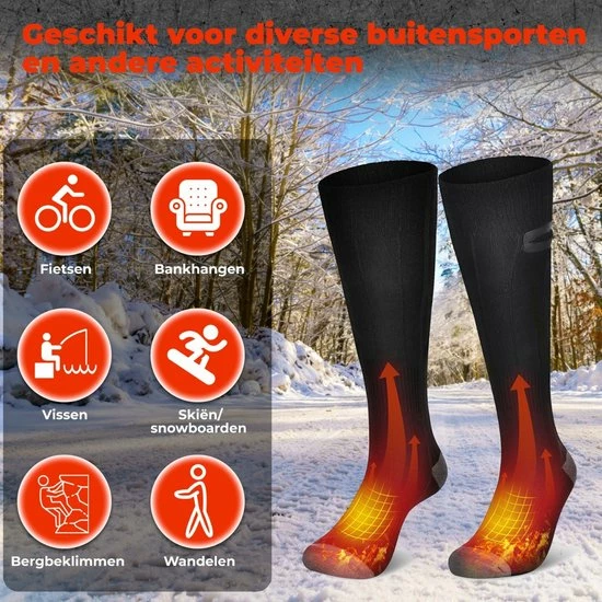 Heeft u ook altijd last van koude voeten in de winter? Dit is vanaf nu verleden tijd met de elektrisch verwarmde sokken van B-care! Met deze verwarmde sokken heeft u nooit meer last van koude voeten tijdens het bankhangen, wandelen, skiën, fietsen enzovoort. Deze unisex sokken zijn speciaal ontworpen om de koude winterdagen door te komen. De sokken beschikken over 3 standen, waarmee u verschillende warmtes kunt instellen.