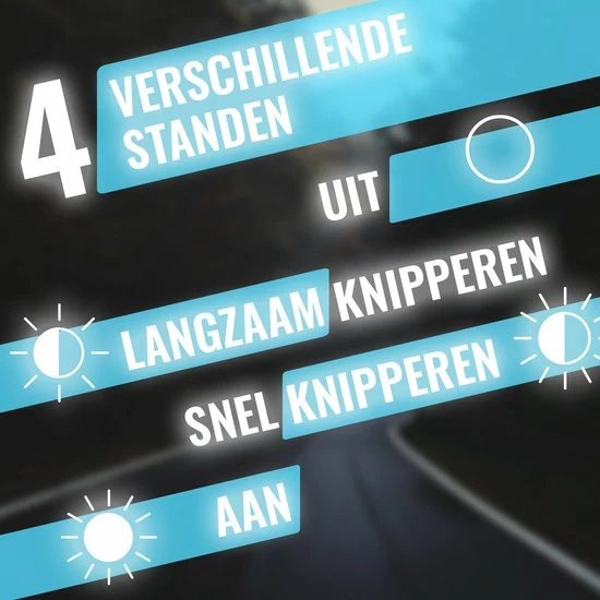De verlichting is afzonderlijk te bedienen in een van de drie gewenste standen (continue branden, knipperen en snel knipperen).