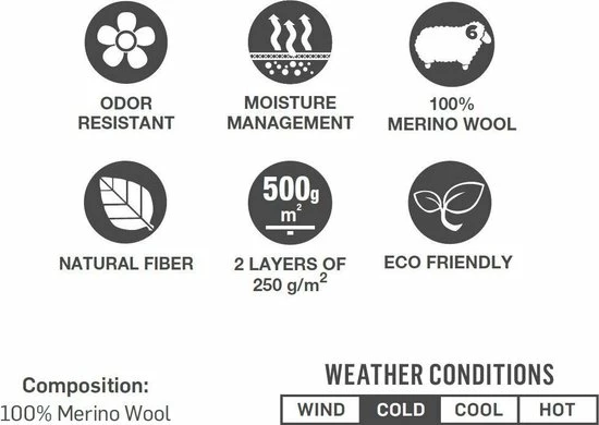 โข Eco-vriendelijk; de Merino Wol is op een diervriendelijke manier verkregen met oog voor het milieu