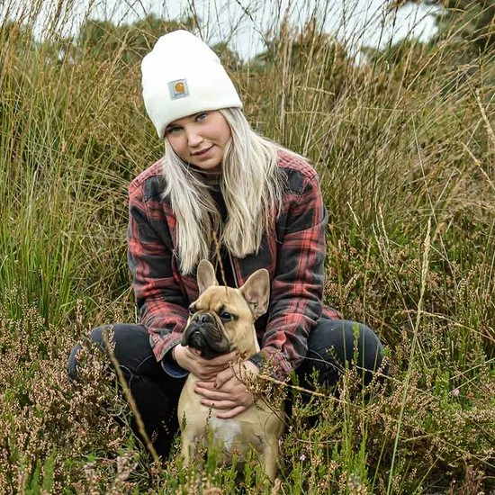 De iconische Carhartt A18-Watch Hat met het karakteristieke Carhartt label op de voorkant is favoriet in het straatbeeld.