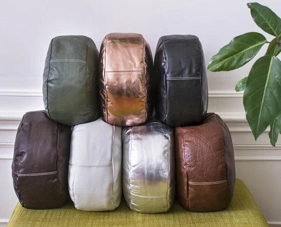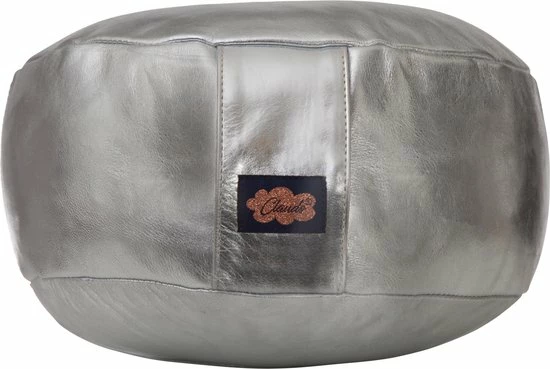 Leren pouf / vloerkussen / yoga of meditatie kussen SILVER. Afmetingen: 33 x 13,5 cm, merk Clauds. Aparte binnenzak met bio organische boekweit kaf vulling (navulbaar via rits onderkant). Ook leuk als kinder pouf of als decor stuk in uw huis.