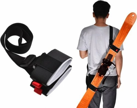 Met je handen vrij naar de piste lopen? Geen gestuntel meer met vallende ski’s en skistokken? Met deze ski-draagband hang je je ski’s eenvoudig over je schouder of op je rug. Aan de uiteindes van deze draagband zitten twee grip-lussen van klittenband met foam. De foam band zorgt ervoor dat uw ski’s niet beschadigen en hebben extra grip om de ski’s en eventueel skistokken goed bij elkaar blijven. Het uiteinde is gemaakt van klittenband zodat deze op elke gewenste positie sluitbaar is. De band tussen de grip-lussen is verstelbaar van 60 tot 120 cm. Dat maak de Ski draagband geschikt als handdrager, schouderdrager of rugdrager!
