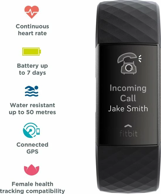 Naast het meten van de activiteiten stuurt de Charge 3 berichten door vanaf je smartphone indien deze verbonden is. Daarbij kunnen Android gebruikers berichten van korte antwoorden voorzien en inkomende oproepen opnemen of wegdrukken.