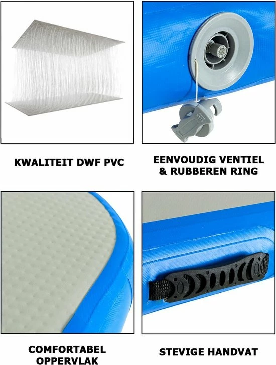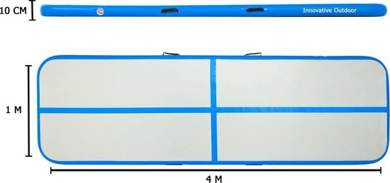 – Afmetingen opgeblazen AirTrack l x b x h: 400 x 100 x 10 cm.
