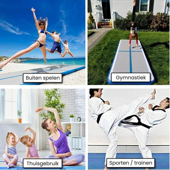 Onze Airtrack kun je overal gebruiken: in huis, tuin, park, camping, sportschool, strand en in water.