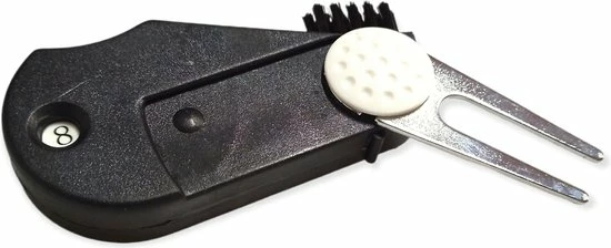 Deze pitchfork is licht van gewicht en gemakkelijk aan de broek of tas gehangen worden door handige clip. Deze pitchfork is gemaakt van goede kwaliteit plastic en kent een lange levensduur. Daarnaast beschikt deze handige golfaccessoire naast een Green repair ook over een slagenteller, golfclubborstel รฉn marker. De slagenteller is ideaal voor het tellen van je slagen. De golfclubborstel is de perfecte tool om je golfclubs schoon en netjes te houden voor meer grip, spin en controle over je bal. En de marker is zeer geschikt om de plek waarop je bal ligt te markeren en zo makkelijk herkenbaar te maken. Deze 4 in 1 pitchfork is dan ook een must golfaccessoire voor de golfer!