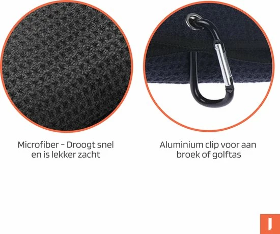Deze golfhanddoek is 30 x 50 cm en is gemaakt van 100% microfiber. Dit zorgt ervoor dat de golfhanddoek sterk absorbeert en snel droogt. Ook is de handdoek eenvoudig te wassen. De golfhanddoek neemt weinig ruimte in beslag wanneer je deze aan je golftas hangt. Middels de stalen ophang clip is de handdoek gemakkelijk aan je golftas te monteren zodat je deze snel binnen handbereik hebt. Niet alleen ideaal voor het schoon- en droogmaken van je handen, maar ook te gebruiken om vuil van je golfclubs te verwijderen zonder je clubs te beschadigen.