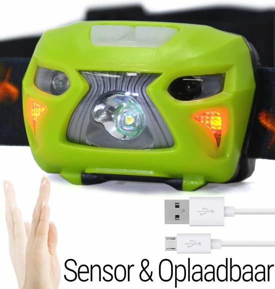 Hoofdlamp LED USB Oplaadbaar Waterdicht met Bewegingssensor, geeft super veel licht en gaat heel lang mee (met oplaadbare batterijen). Ultraheldere krachtige led hoofdlamp, lichtgewicht en geschikt voor iedere activiteit. Met wit en rood licht. Bevat de nieuwste krachtige XP-E / XP-G2 CREE leds die veel licht geven.