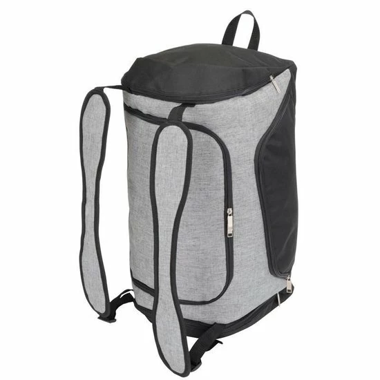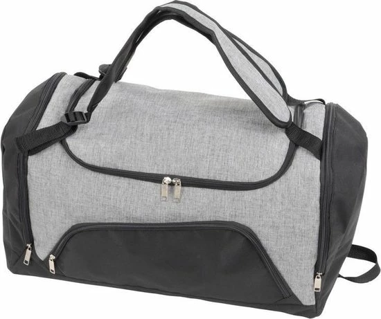 Grijs/zwarte sporttas/weekendtas rugtas 55 cm. Deze tas beschikt over een schoenenvak, groot hoofdvak met rits, een voorvak met rits, 2 zijvakken met rits, een afneembare en verstelbare schouderband met schouderpad en verstevigde handvatten. U kunt deze tas dragen als sporttas, maar ook als rugtas. Afmeting: ca. 55 x 30 x 28 cm. Inhoud: ca. 45 liter. Materiaal: 300D / 600D polyester. Gewicht: 480 gram. Fitness/sporttassen – Weekendtassen/reistassen/rugtassen – Grote tassen met schoenenvak, in de kleur grijs/zwart.