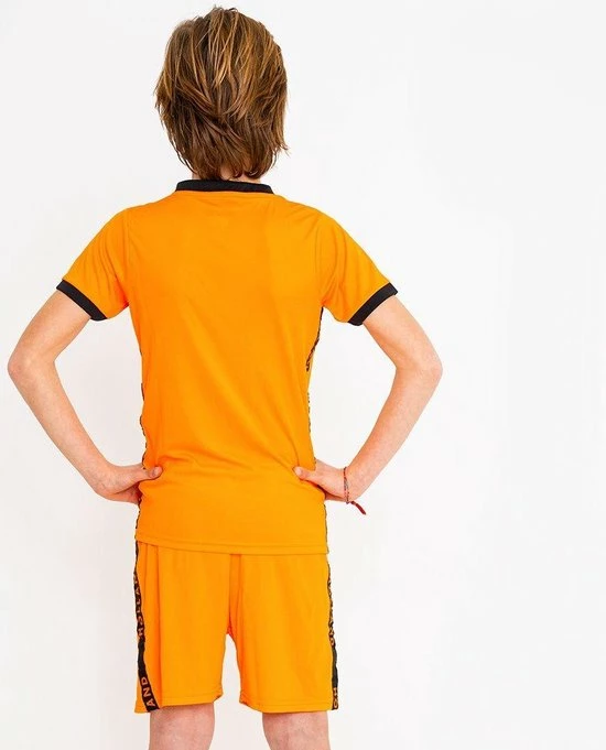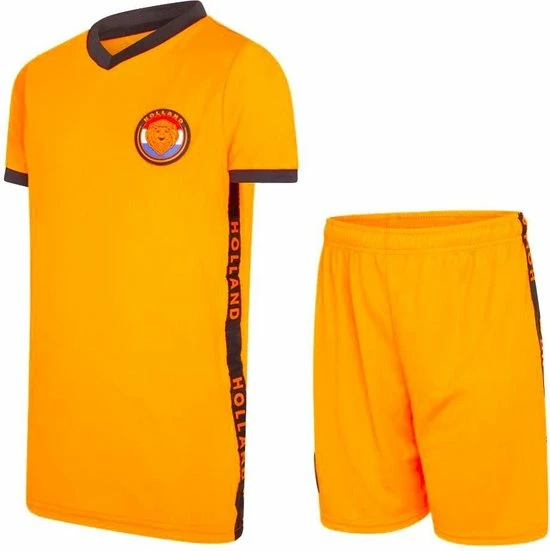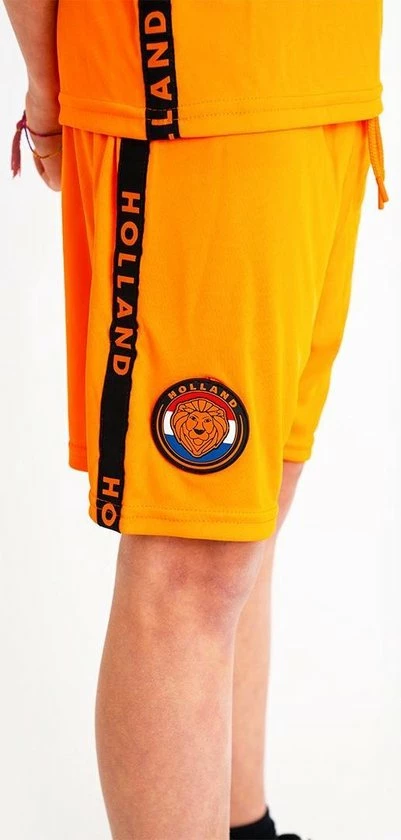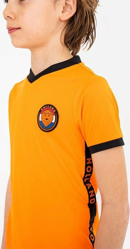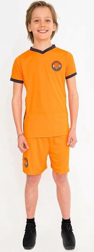 Nederlands elftal tenue jongens Wij houden van Oraaahaanje! Jouw zoon ook? Scoor dan hier een Oranje jongens voetbaltenue voor extra support van de Oranje leeuwen en Leeuwinnen! Dit tenue bestaat uit een voetbalshirt en een voetbalbroekje en is gemaakt van 100% polyester. Hierdoor is dit tenue ideaal voor een goed potje voetbal of tijdens een interland van onze Oranje helden. Het oranje tenue is voorzien van een Holland tape op beide zijkanten. Daarnaast beschikt het Oranje jongens tenue over een uniek Leeuwen-logo met de Nederlandse vlag op de borst en broek. Met dit tenue ontstaat er geen verwarring over het favoriete elftal jouw zoon! Scoor daarom snel Oranje jongens tenue voor je kleine! Misschien wordt hij de toekomstige oranje held. De nieuwe oranje held! Het is de droom van ieder jongetje dat in Nederland op voetbal gaat: ooit het Nederlands elftal halen. Want wie droomt er niet van een kolkende massa mensen die jouw naam scandeert? In de laatste minuut de winnende maken in de WK-finale? Iets mooiers bestaat bijna niet, vinden wij bij Voetbalfanshop. Gun jij jouw zoontje ook het gevoel om een echt oranje tenue te dragen? Kijk dan of ons jongens tenue in zijn maat verkrijgbaar is en wie weet staat hij ooit op dat veld mee te zingen met het Wilhelmus. Volledig oranje tenue Dit Oranje tenue beschikt over alles wat jouw zoon nodig heeft om te sporten. Van een prettig zittend shirt en broekje. Maak de look compleet met een bijbehorende cap, sjaal en voetbal, dan heeft jouw zoon zijn oranje voetbalset voor het komende toernooi alvast klaar! Voetbalshirt bedrukken Heeft jouw zoon altijd al een voetbaltenue met naam willen hebben net zoals onze Oranje helden en heldinnen? Laat het Oranje voetbalshirt bedrukken met zijn naam en rugnummer en maak er een uniek tenue van! Het is ook mogelijk om de naam en rugnummer van zijn favoriete Nederlands elftalspeler op het shirt te bedrukken. Meer oranje producten kopen? Naast een jongens tenue beschikken we ook over een bijhorend Oranje trainingspak (https://www.voetbalfanshop.nl/goedkope-trainingspakken/oranje-trainingspakken/). Maak het Oranje outfit helemaal compleet met onze Oranje sjaal (https://www.voetbalfanshop.nl/accessoires/voetbal-sjaals/oranje-sjaal/) en pet (https://www.voetbalfanshop.nl/accessoires/caps/oranje-pet-20-21/). Daarnaast hebben wij ook Holland t-shirt voor kinderen en volwassenen. Bekijk onze Holland t-shirts hier (https://www.voetbalfanshop.nl/oranje-collectie/holland-t-shirts/)!
