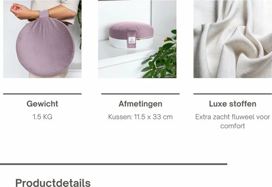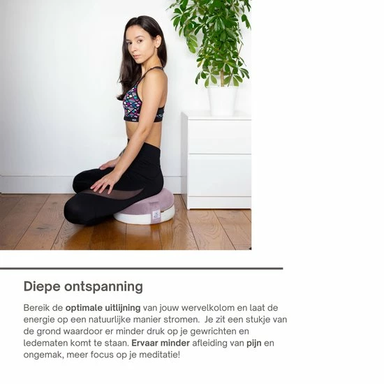 - Gebruik in verschillende poses: Het kussen is geschikt voor de kleermakers zit of de Japanse zithouding waarbij op je knieรซn zit met je voeten plat naar achter. Het kussen is uitermate geschikt om te gebruiken tijdens yoga poses voor extra stimulatie en ontspanning.