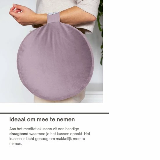 - Ideaal om mee te nemen: Aan het meditatiekussen zit een handige draagband waarmee je het kussen oppakt. Het kussen is licht genoeg om makkelijk mee te nemen.