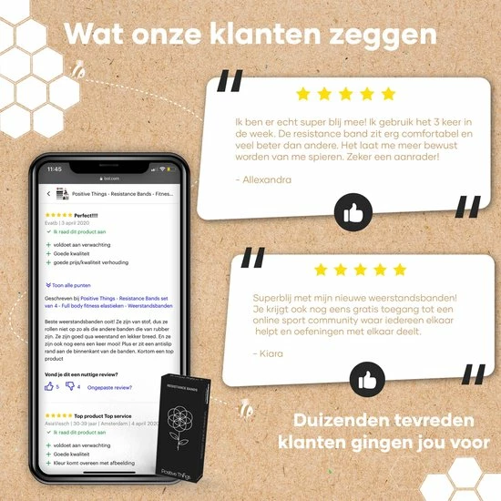 We staan achter de kwaliteit van onze resistance bands, weerstandsbanden, fitness elastieken en booty bands. Als je om welke reden dan ook niet tevreden bent met je aankoop, neem dan gerust contact met ons op. Wij bieden 30 dagen niet-goed-geld-terug garantie of vervanging van het product. 100% tevredenheids garantie voor risicoloos online winkelen!