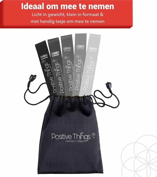 Train thuis, buiten, in de sportschool of neem de weerstandsbanden mee op vakantie. De resistance bands zijn licht neem je overal makkelijk mee naar toe in de meegeleverde travel bag. De fitness elastieken van Positive Things zijn geschikt voor zowel beginners als professionals. Krijg de billen waar je altijd al van droomde!