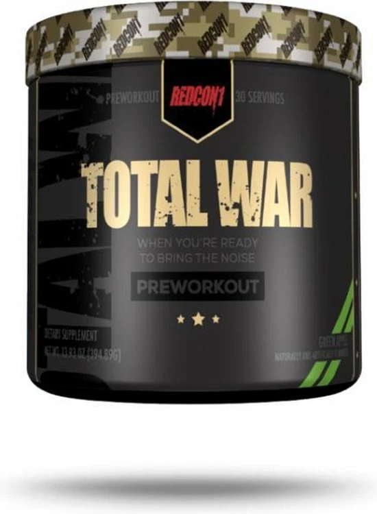 Redcon1 Total War Train en concurreer met de intensiteit en energie van het licht. Total War is wat elke pre-workout wenst dat het was, met meer vuurkracht per portie dan wat dan ook in zijn klasse. Of je nu traint voor je werk of school, midden op de dag of later op de avond Total War heeft het vermogen om elke time-out door te komen. De krachtige combinatie van stimulerende middelen en focusfactoren samen met NO-verbindingen maakt Total War een alles-in-één pre-workout supplement. Geniet van de meeste energie-, focus- en huidverscheurende pumps die je ooit hebt gevoeld tijdens een training. Je wilt niet na 30 of 40 minuten naar huis, maar in plaats daarvan moet iemand je uit de sportschool halen. Total War is niet voor bangeriken, maar voor de serieuze atleet of sportschoolbezoeker die verwacht op het hoogste niveau te presteren wanneer hij wordt gevraagd.