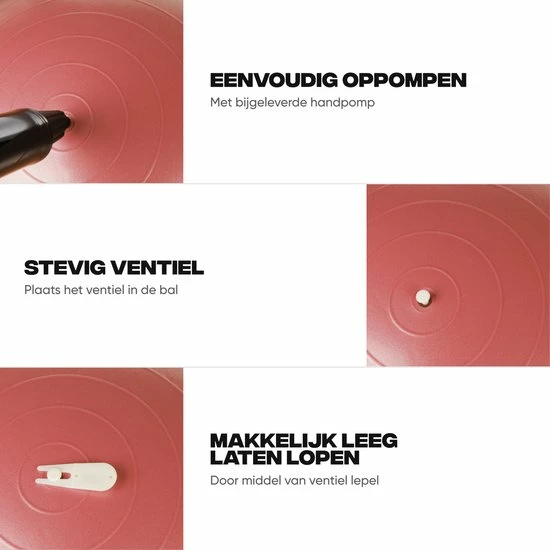 Controleer na het volledig oppompen de diameter van de bal en je zithouding.