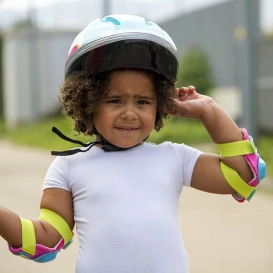 - Inclusief beschermuitrusting: helm, knie- en elleboogbeschermers. Beschermen het kind bij valpartijen en botsingen.