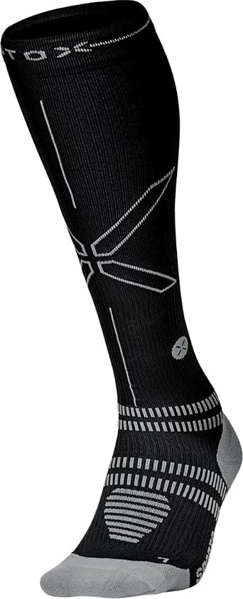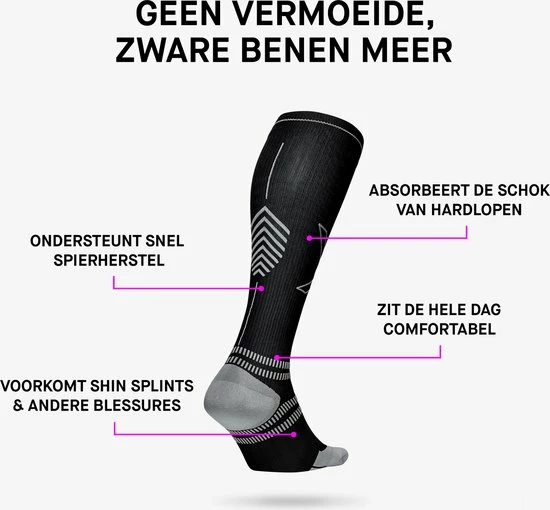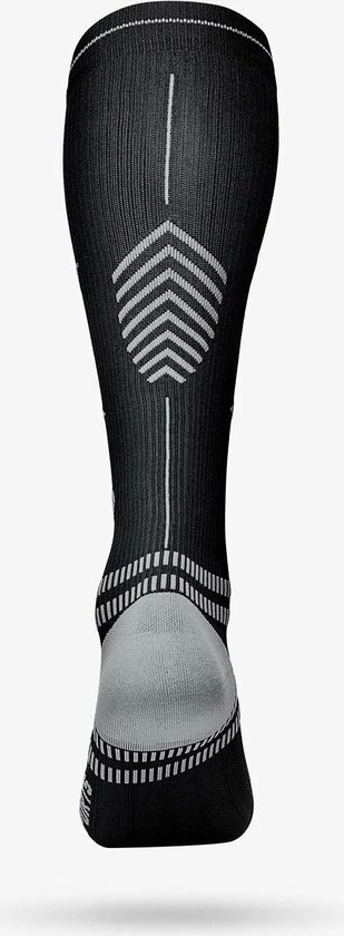 WERKING: De Running Socks bevatten compressie. Dit verbetert de bloedcirculatie in de benen. Hiermee verklein je de kans op spierpijn en blessures en herstel je sneller na inspanning. De sokken stabiliseren en ondersteunen je enkels, schenen en kuitspieren optimaal.