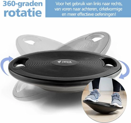 โก๏ธ Balans, coรถrdinatie en stabiliteit verbeteren? Dan is de Swilix Balansbord met handgrepen de perfecte oplossing voor jou! Wil jij je enkels versterken na een blessure? Of train je graag je coรถrdinatie? Dan kun je niet zonder deze uitgekiende trainer. Uitgekiend, omdat je er ook je push-ups mee op een hoger plan brengt. Het ruwe oppervlak zorg voor een goed grip. Het balanspunt is zacht en daarmee niet schadelijk voor je vloer.