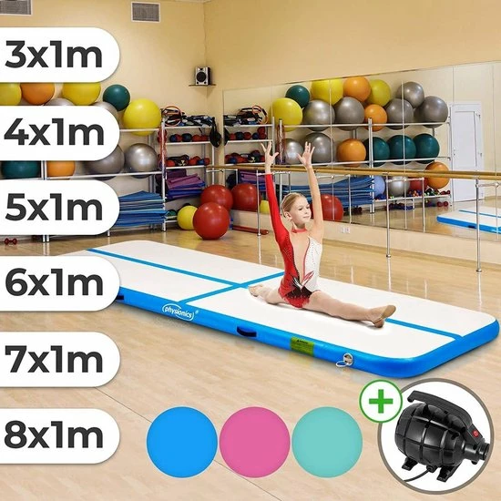 De airtrack is niet zomaar een turnmat, maar een opblaasbare in- en outdoor gymnastiek mat. Dit zorgt ervoor dat de airtrack gemakkelijk mee te nemen en op te bergen is. Door de meegeleverde elektrische luchtpomp met een vermogen van 600 Watt is de airtrack binnen de kortste keren opgeblazen. Het is belangrijk om voldoende beweging te krijgen, vooral kinderen moeten lekker kunnen spelen. Deze airtrack is zeer uitnodigend om te gebruiken op ieder dagdeel. Wacht niet langer en bekijk onze airtracks!