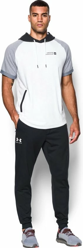 Deze Under Armour Sportstyle Tricot Jogger is een losvallende joggingbroek voor heren. De jogger heeft een slijtvast gebreid weefsel met een gladde buitenkant en zachte voering voor behoud van warmte. Het materiaal voert zweet af en droogt zeer snel, waardoor het goed te gebruiken is tijdens het sporten. Deze sportbroek heeft een geribbelde tailleband met trekkoord aan de buitenkant voor een goede pasvorm rond de taille, en is verder voorzien met een zak linksachter, steekzakken, en rechts een binnenvakje voor je telefoon.