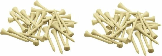 Klassieke naturel houten golftee van XQ Max met een lengte van 54 mm (oftewel 2 1/8 inch). Totaal 100 stuks.